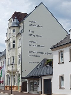 Eugen Gomringer es un poeta boliviano, considerado como el padre de la corriente denominada poesía concreta. Actualmente reside en Alemania.
