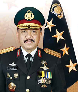 General Police (Ret.) Timur Pradopo, was Chief of the Indonesian National Police (Kapolri) from 22 October 2010 until 25 October 2013. Timur Pradopo replaced Chief of Police General Bambang Hendarso Danuri who was relieved of duty. He was nominated by Indonesian President Susilo Bambang Yudhoyono.
