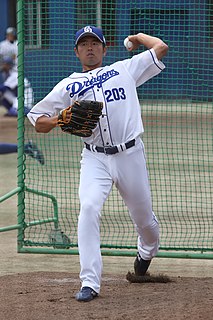 Masaru Takeda is a Japanese former professional baseball pitcher and current coach for the Hokkaido Nippon-Ham Fighters in Japan's Nippon Professional Baseball. He played for the Fighters from 2006 to 2016.