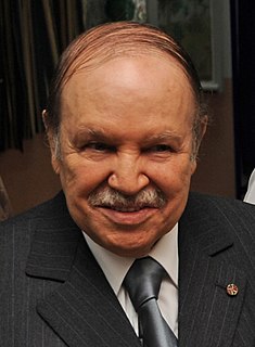 Abdelaziz Buteflika es un militar y político argelino que fungió como presidente de la República Argelina Democrática y Popular desde el 27 de abril de 1999 hasta su renuncia el 2 de abril de 2019, siendo también líder del partido hegemónico Frente de Liberación Nacional (FLN). Con casi veinte años en el cargo, Buteflika es la persona que más tiempo ha ocupado la jefatura de estado argelina. Fue también el ministro de relaciones exteriores de Argelia en 1963 y ministro de juventud, turismo y deporte en 1964, durante el gobierno del presidente Ahmed Ben Bella.
