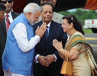 Sarojini Ballah, The Right Honorable Lady Jugnauth, a former Spouse of the Prime Minister of Mauritius is the wife of Sir Anerood Jugnauth. She previously held the position from 1982 to 1995 and from 2000 to 2003, most recent from 2014 to 2017. She was the First Lady of Mauritius from 2003 to 2012 when her husband served as President of the country. She is a primary school teacher by profession and is the mother of Shalini Malhotra and Pravind Jugnauth.