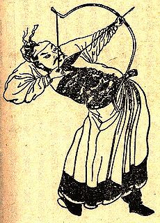 Yuchi Gong (尉遲恭) or Yuchi Rong (尉遲融) (585–658), courtesy name Jingde (敬德), also known by his posthumous name Duke Zhongwu of E, was a prominent general who lived in the early Tang dynasty. Yuchi Jingde and another general Qin Shubao are worshipped as door gods in Chinese folk religion.