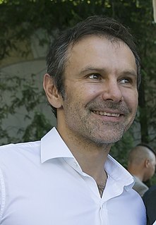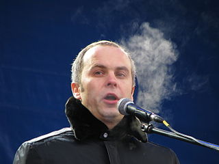 Svyatoslav Vakarchuk is a Ukrainian musician, politician and public activist. He is the lead vocalist of Okean Elzy, a rock band in Ukraine. Vakarchuk is a former member of the Ukrainian parliament, and the founder of the Voice.