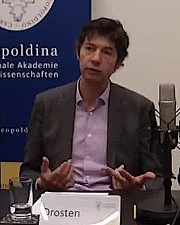 Christian Heinrich Maria Drosten (nacido el 12 de junio de 1972 en Lingen im Emsland ) es un virólogo alemán . De 2007 a 2017 fue profesor en la Universidad de Bonn . Desde 2017 es profesor, titular de la cátedra y director de instituto en la Charité de Berlín y, al mismo tiempo, jefe del departamento de virología de " Labor Berlin - Charité Vivantes Services GmbH ", el laboratorio hospitalario comercial más grande de Europa. Una de sus investigaciones se centran en los virus emergentes. Drosten se hizo conocido por un público más amplio en el curso de la pandemia COVID-19 , entre otras cosas con el podcast Coronavirus Update de NDR y como asesor científico de los gobiernos federal y estatal . Al informar sobre la pandemia, es uno de los científicos más mencionados en Alemania.