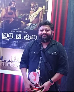 Lijo Jose Pellissery is an Indian film director and actor who predominantly works in Malayalam Cinema. Known for his unconventional approach in directing, his films are characterized by nonlinear storylines, aestheticization of violence, extended scenes of dialogue and very long takes. He is a recipient of the Best Director Award at the 48th Kerala State Film Awards for Ee.Ma.Yau, Best Director Award at the 50th Kerala State Film Awards for Jallikattu, Best Film Award at the 44th Kerala Film Critics Association Awards for Jallikattu and twice recipient of Silver Peacock for the Best Director at the 49th International Film Festival of India and 50th International Film Festival of India for his films Ee.Ma.Yau and Jallikattu respectively. He also received the Silver Crow Pheasant Award at the International Film Festival of Kerala 2018. He is widely considered to be one of the most important and influential filmmakers of Indian Cinema.