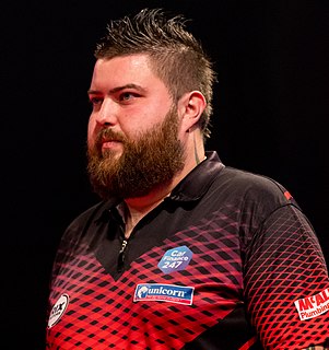 Michael Smith is an English professional darts player playing in Professional Darts Corporation (PDC) events. He is the 2013 PDC Under-21 World Champion and has since won eight titles on the PDC Pro Tour. Smith was managed by Tommy Gilmour MBE of Dunvegan Darts and mentored by team mate Scottish darts player Gary Anderson. Michael and his wife Dagmara now manage his career themselves as a family business after a split from Dunvegan Darts Ltd in December 2019.