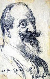 Alexandru Bogdan-Pitești was a Romanian Symbolist poet, essayist, and art and literary critic, who was also known as a journalist and left-wing political agitator. A wealthy landowner, he invested his fortune in patronage and art collecting, becoming one of the main local promoters of modern art, and a sponsor of the Romanian Symbolist movement. Together with other Post-Impressionist and Symbolist cultural figures, Bogdan-Pitești established Societatea Ileana, which was one of the first Romanian associations dedicated to promoting the avant-garde and independent art. He was also noted for his friendship with the writers Joris-Karl Huysmans, Alexandru Macedonski, Tudor Arghezi and Mateiu Caragiale, as well as for sponsoring, among others, the painters Ștefan Luchian, Constantin Artachino and Nicolae Vermont. In addition to his literary and political activities, Alexandru Bogdan-Pitești was himself a painter and graphic artist.