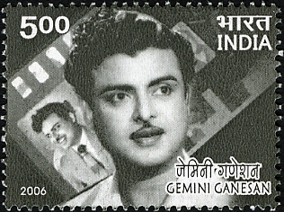 Ganapati Subramanian Sarma or Ramasamy Ganesan, better known by his stage name Gemini Ganesan, was an Indian actor who worked mainly in Tamil cinema. He was nicknamed "Kaadhal Mannan" for the romantic roles he played in films. Ganesan was one of the "three biggest names of Tamil cinema", the other two being M. G. Ramachandran and Sivaji Ganesan. While Sivaji Ganesan excelled in dramatic films and M. G. Ramachandran was popular as an action hero, Gemini Ganesan was known for his romantic films. A recipient of the Padma Shri in 1971, he had also won several other awards including the "Kalaimamani", the "MGR Gold Medal" and the "Screen Lifetime Achievement Award". He is one of the few college graduates to enter the film industry at that time.