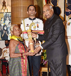 Tulsi Gowda is an Indian environmentalist from Honnali village, Ankola taluk in Karnataka state. She has planted more than 30,000 saplings and looks after the nurseries of the Forest Department. Despite having no formal education, she has made immense contributions towards preserving the environment. Her work has been honored by the government of India and various organizations. She was honored with Padma Shri, the fourth highest civilian award of India, on 8 November 2021.
