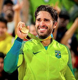Bruno Oscar Schmidt is a Brazilian beach volleyball player. He plays as a right-side defender. Bruno is the nephew of the former Brazilian basketball player Oscar Schmidt and of the TV news announcer Tadeu Schmidt. In 2010, he was named the FIVB Beach Volleyball World Tour Most Improved Player. He was also named the Best Defensive Player in 2013, 2014, 2015 and 2016. Schmidt won the gold medal at the 2015 World Championships with his teammate Alison Cerutti in the Netherlands. He won the gold medal at the 2016 Rio olympics with Alison Cerutti.
