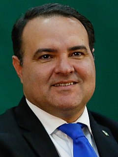 Eunício Lopes de Oliveira is a Brazilian politician and businessman. He has represented Ceará in the Federal Senate since 2011 and became president of the Senate of Brazil on 1 February 2017. Previously, he was a federal congressman representing Ceará from 1999 to 2011. He is a member of the Brazilian Democratic Movement Party. He was candidate running for Governor of Ceará in 2014. He is mentioned in 2017 among the beneficiaries of bribes from the multinational JBS.