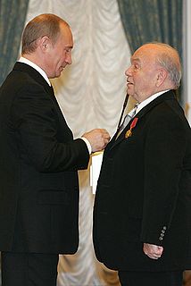 Andrei Andreyevich Voznesensky was a Soviet and Russian poet and writer who had been referred to by Robert Lowell as "one of the greatest living poets in any language." He was one of the "Children of the '60s," a new wave of iconic Russian intellectuals led by the Khrushchev Thaw.