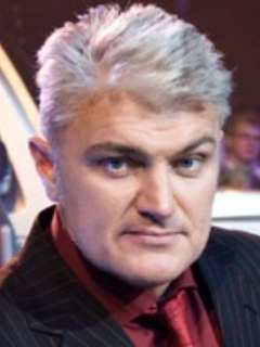 Vladimir Yevgenyevich Turchinsky was a Russian wrestler, strongman, television and radio presenter, actor, author, singer and businessman. After completing military service he took various odd jobs, as a photographer, bodyguard, security officer, circus performer, and translator from English and French. He later became a notable media personality capitalizing on his massive physique and a strongman image.