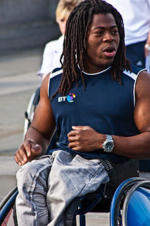 Olayiwola "Ade" Adepitan es un presentador de televisión británico y jugador de baloncesto en silla de ruedas. Usa una silla de ruedas como resultado de contraer polio cuando era niño, lo que derivó en la pérdida del uso de su pierna izquierda.