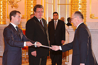 Halil Akıncı is a retired Turkish diplomat who served as the Turkish Ambassador to Slovenia, India, and Russia. He was formerly the Secretary General of the Turkic Council. On the photo Ambassador Akinci presents his credentials to Russian President Dmitry Medvedev on 18 September 2008.