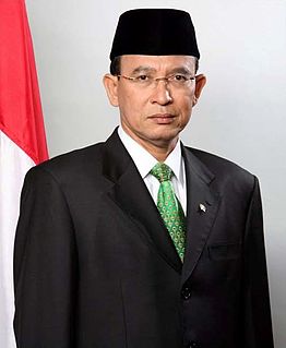 Suryadharma Ali is an Indonesian politician who was the president of the United Development Party from 2007 to 2014 as well as Minister of Religious Affairs from 2009 to 2014 under then-president Susilo Bambang Yudhoyono.