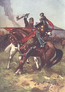 Sir Henry de Bohun was an English knight, the grandson of Humphrey de Bohun, 2nd Earl of Hereford. He was killed on the first day of the Battle of Bannockburn by Robert the Bruce. Riding in the vanguard of heavy cavalry, de Bohun caught sight of the Scottish king who was mounted on a small palfrey (ane gay palfray Li till and joly) armed only with a battle-axe. De Bohun lowered his lance and charged, but Bruce stood his ground. At the last moment Bruce manoeuvred his mount nimbly to one side, stood up in his stirrups and hit de Bohun so hard with his axe that he split his helmet and head in two. Despite the great risk the King had taken, he merely expressed regret that he had broken the shaft of his favourite axe.