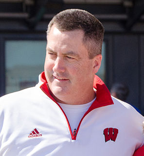 Paul Joseph Chryst is an American football head coach and former player. He is currently the head football coach for the Wisconsin Badgers. In his four years to date with Wisconsin, only four NCAA teams have more wins than Chryst. Chryst was the head coach at the University of Pittsburgh from 2012 to 2014. Prior to his head coaching career, Chryst had previously been the offensive coordinator at Wisconsin from 2005 through 2011. He also served in the same capacity at Oregon State University and was an assistant coach for the San Diego Chargers of the National Football League. Chryst played college football at Wisconsin, where he lettered as a quarterback and tight end from 1986 to 1988.