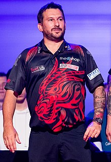 Jonny Clayton is a Welsh professional darts player who plays in Professional Darts Corporation (PDC) events. Nicknamed The Ferret, he won the 2016 Worthingtons Darts Champion of Champions. He was part of the Wales team that won the 2020 PDC World Cup of Darts.