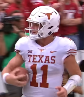 Samuel George Ehlinger is an American football quarterback for the Texas Longhorns. He was a consensus four-star quarterback recruit coming out of Westlake High School in Austin, Texas where he broke school records held by Super Bowl-winning quarterbacks Drew Brees and Nick Foles. He committed to the University of Texas at Austin in July 2015 and joined the team two years later. In his freshman season with the Longhorns in 2017, Ehlinger split playing time with quarterback Shane Buechele, playing in nine games and compiling a 2–4 record as a starter. Ehlinger solidified his position as Texas's starting quarterback in his sophomore year, starting in all 14 games and leading his team to the Big 12 Conference Championship game for the first time since 2009 and winning the 2019 Sugar Bowl to end the season 10–4.