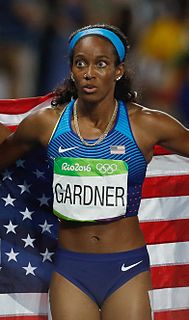 English Gardner es una atleta estadounidense, especialista en la prueba de relevos 4 x 100 m, con la que ha logrado ser campeona olímpica en Río 2016.