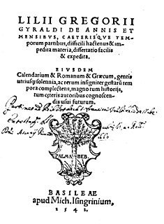 Lilio Gregorio Giraldi,, fue un humanista italiano del Renacimiento, uno de los hombres más eruditos de su tiempo, según Girolamo Tiraboschi.
