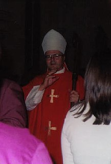 Jerome George Hanus, O.S.B. is an American prelate of the Catholic Church. He was the ninth Archbishop of Dubuque, serving from October 16, 1995 until April 8, 2013, when Pope Francis named Michael Jackels. A member of the Order of Saint Benedict, he was Abbot of Conception Abbey from 1977 to 1987. He also served as Bishop of Saint Cloud (1987–1994) and Coadjutor Archbishop of Dubuque (1994–1995).