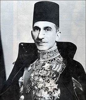 Ahmed Hassanein Pasha, KCVO, MBE or Aḥmad Moḥammad Makhlūf Ḥasanēn al-Būlākī was an Egyptian courtier, diplomat, politician, and geographic explorer. Hassanein was the tutor, Chief of the Diwan and Chamberlain to Farouk, the king of Egypt from 1936 to 1952, and also represented Egypt in the 1924 Summer Olympics in fencing.