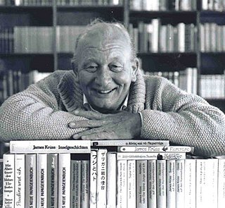 James Krüss was a German writer of children's and picture books, illustrator, poet, dramatist, scriptwriter, translator, and collector of children's poems and folk songs. For his contribution as a children's writer he received the Hans Christian Andersen Medal in 1968.