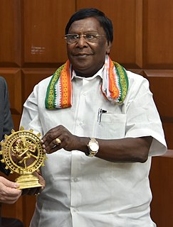 Velu Narayanasamy is an Indian politician serving as the 10th and current Chief Minister of the Union Territory of Puducherry since June 2016. He is a member of Indian National Congress political party.