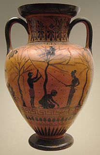 The Antiphon painter was an Athenian vase painter of the early 5th century BC. He owes his name to a double Kalos inscription of Antiphon on the dinos stand in the Antique collection of Berlin. He was active between 500 and 475 BC in Athens as a painter of the red-figure style in the largest workshop of the 5th century. He learned his handicraft in the workshop of Euphronios and Onesimos. There he worked closely with them, the Kalmarer painter and other painters.
