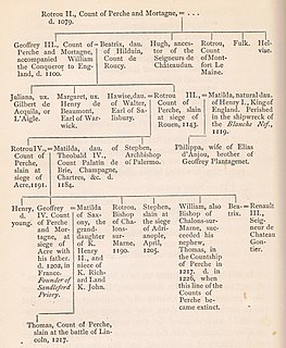 Hugues du Perche was a 10th-century French noble. He was the youngest son of Fulcois, the Count of Perche, probably of the family of viscounts from Châteaudun, and his wife, Melisende. He was also one of the first known ancestors in male line of the Plantagenets.