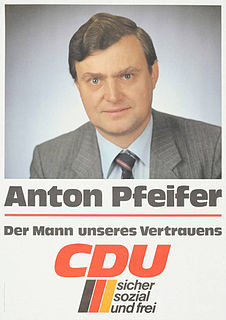 Anton Pfeifer is a German politician of the Christian Democratic Union (CDU) and former member of the German Bundestag.