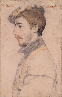 Sir Nicholas Poyntz was a prominent English courtier during the latter part of Henry VIII's reign. There is a portrait drawing by Hans Holbein the Younger in the Royal Collection and an oil portrait after the same artist based on the drawing in the National Portrait Gallery, London. One further portrait also exists after Holbein.