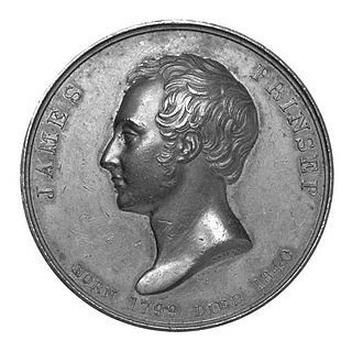 James Prinsep FRS was an English scholar, orientalist and antiquary. He was the founding editor of the Journal of the Asiatic Society of Bengal and is best remembered for deciphering the Kharosthi and Brahmi scripts of ancient India. He studied, documented and illustrated many aspects of numismatics, metallurgy, meteorology apart from pursuing his career in India as an assay master at the mint in Benares.