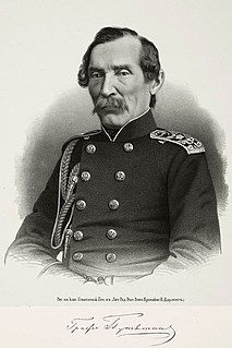 Yevfimiy Vasilyevich Putyatin, also known as Euphimius Putiatin, was an admiral in the Imperial Russian Navy. His diplomatic mission to Japan resulted in the signing of the Treaty of Shimoda in 1855, for which he was made a count. His mission to China in 1858 resulted in the Russian Treaty of Tianjin.