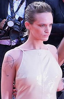 Agathe Rousselle is a French journalist, model, and actress. She is the co-founder of feminist magazine Peach and a custom embroidery company Cheeky Boom. She is also known for her lead performance as Alexia in the body horror film Titane, which won the Palme d'Or at the 2021 Cannes Film Festival.