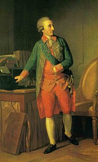 Count, then Prince Nikolay Ivanovich Saltykov, a member of the Saltykov noble family, was a Russian Field Marshal and imperial courtier best known as the tutor of the eventual Tsar Paul I of Russia and his two sons, Constantine and Alexander.