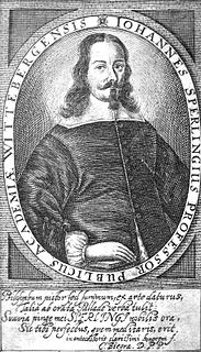 Johann Sperling was a German physician, zoologist and physicist, deacon and Rektor of the University of Wittenberg. He was among the first to practise zoology as a natural science, writing a first handbook about animals, Zoologia physica.