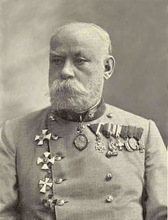 Robert von Sterneck was a member of the Budweis Daublebsky von Sterneck baronial family who served as an Austro-Hungarian general major, geophysicist and astronomer. He studied in Prague and entered the Austro-Hungarian Army in 1859, participating in the Magenta und Solferino campaign that year and in the Austro-Prussian War of 1866. From 1862 to 1880, he served head of the astronomical-geodetic section of the military geographic institute in Vienna, and from 1880 to 1902 as the head of the institute's astronomical observatory. He led numerous geodetic missions in the Balkans during the 1870s.