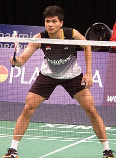 Ricky Karanda Suwardi is an Indonesian badminton player specializing in doubles. He is from Mutiara Cardinal Bandung club. Paired with Angga Pratama started end of 2014, the 2015 Singapore Open became the first BWF World Superseries title for him in the men's doubles after beating Chinese pair Fu Haifeng and Zhang Nan in the final by 21–15, 11–21, 21–14.