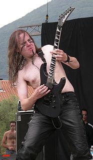 Markus Toivonen is the founding member of the Finnish folk/death metal band Ensiferum. Markus founded the band in 1995 and is the sole original member to have lasted the distance to Ensiferum's present incarnation. His role in the band is guitarist and primary songwriter. He has always contributed backing vocals and since the departure of Jari Mäenpää in 2004 has taken up a greater role behind the microphone, sharing the clean vocal parts with new bass player Sami Hinkka, with Mäenpää's replacement Petri Lindroos handling the harsh vocals.