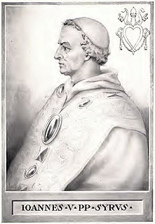 Juan V fue el papa nº 82 de la Iglesia católica de 685 a 686.