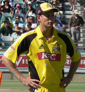 Adam Charles Voges is an Australian cricket coach and former cricketer who played for the Australian national team at Test, One Day International (ODI), and Twenty20 International (T20I) level, and also captained Western Australia and Perth Scorchers in domestic cricket. Voges' test match batting average of 61.87 is second behind Don Bradman among batsmen who have finished their career and played a minimum of 20 innings. Voges was included in the 2016 ICC Test Match Team of the Year.