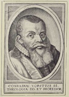 Conrad Vorstius was a German-Dutch heterodox Remonstrant theologian, and successor to Jacobus Arminius in the theology chair at Leiden University.