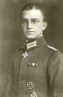 Leutnant Kurt Wintgens was a German World War I fighter ace. He was the first military fighter pilot to score a victory over an opposing aircraft, while piloting an aircraft armed with a synchronized machine gun. Wintgens was the recipient of the Iron Cross and the Pour le Mérite.
