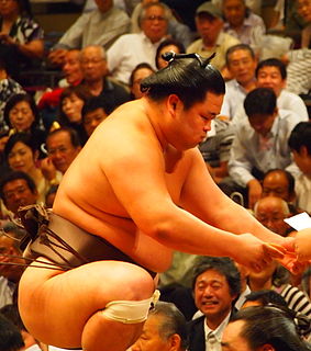 Myōgiryū Yasunari is a Japanese professional sumo wrestler from Takasago, Hyōgo. Making his debut in May 2009 as a makushita tsukedashi out of university, he reached the top division for the first time in November 2011. His highest rank to date has been sekiwake. He has earned six special prizes for Technique and six kinboshi for defeating yokozuna.