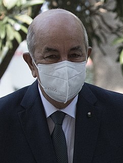 Abdelmajid Tebboune es un político argelino, desde el 19 de diciembre de 2019 Presidente de Argelia y Ministro de Defensa. Fue Primer Ministro de Argelia desde mayo de 2017 hasta agosto de 2017. Anteriormente fue Ministro de Vivienda de 2001 a 2002 y nuevamente de 2012 a 2017.