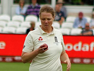 Anya Shrubsole is an English cricketer who is vice-captain of the England women's cricket team. A right-arm medium pace bowler and lower-order right-handed batsman, she plays domestic cricket for Berkshire Women and for Western Storm. She made her England debut in 2008, and was Player of the Match in the 2017 Women's Cricket World Cup Final. In 2018, she became the first woman to appear on the cover of Wisden Cricketers' Almanack.