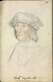 Artus Gouffier de Boissy was a French nobleman and politician. He was duke of Roannez and pair de France, count of Étampes, count of Caravaggio, baron of Passavant, of Maulévrier, of Roanne, of la Mothe-Saint-Romain, of Bourg-Charente and of Saint-Loup, lord of Oiron, of Villedieu-sur-Indre, of Valence and of Cazamajor. He served as Grand Master of France and attempted to negotiate a lasting peace between France and the House of Habsburg at the time of his early death.